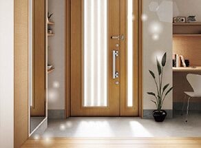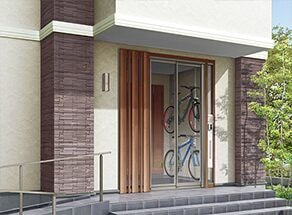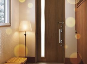 冬の寒さや夏の暑さを遮る、断熱性能が高いドアで、一年中快適なエントランス空間を。