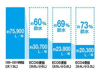 最近のトイレはとてもECO。ECO便器なら6割~7割の節水が可能です。